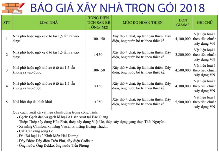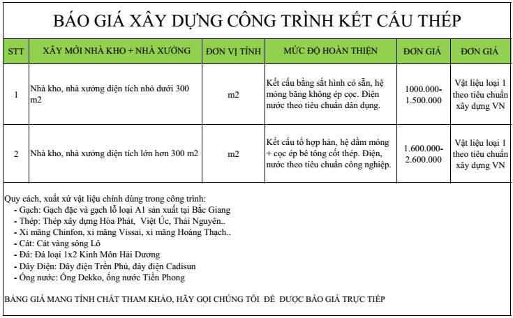 + Bản báo giá dưới đây mang tính chất tham khảo qua một số công trình công ty Việt Tín đã thi công và khảng định
